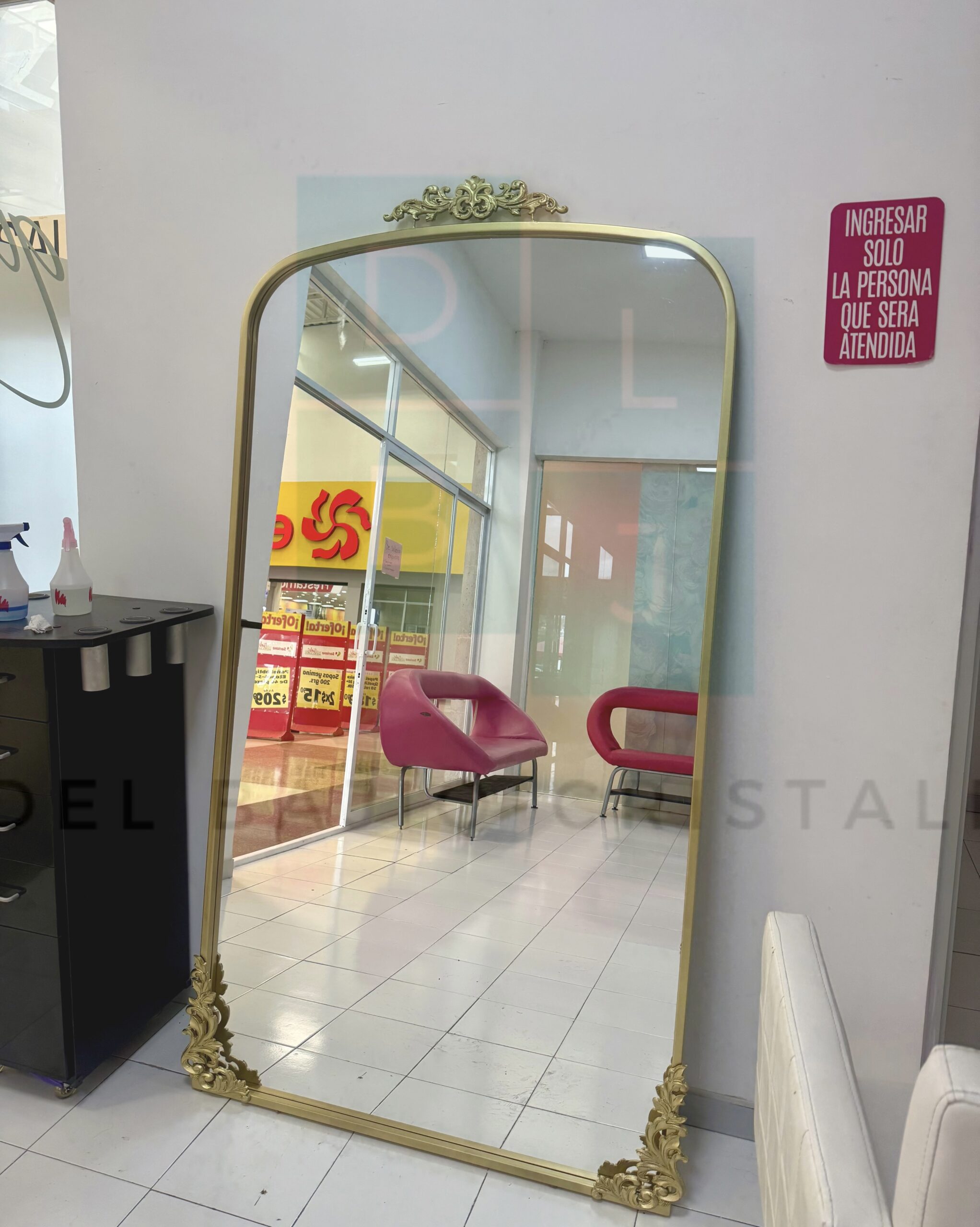 Espejo Arqueado Cuerpo Completo Marco En Herrería 180cm x 70cm Con Pie De Apoyo