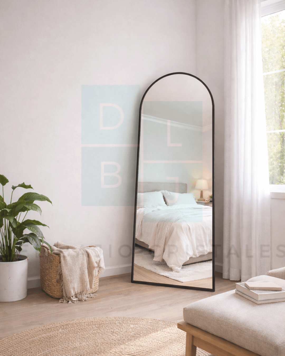 Su práctico pie de apoyo permite que el espejo se mantenga en pie sin necesidad de instalación adicional, facilitando su colocación en cualquier rincón de tu espacio. Este espejo de grandes dimensiones es perfecto para aquellos que desean un reflejo completo, ideal para el dormitorio, vestidor, o sala de estar.