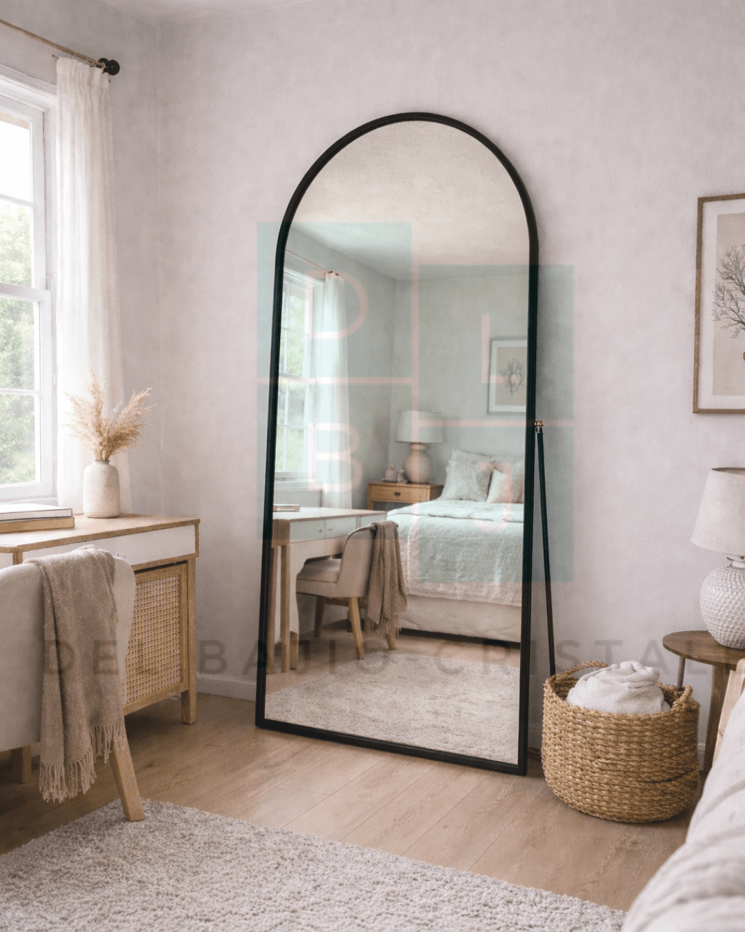 Su práctico pie de apoyo permite que el espejo se mantenga en pie sin necesidad de instalación adicional, facilitando su colocación en cualquier rincón de tu espacio. Este espejo de grandes dimensiones es perfecto para aquellos que desean un reflejo completo, ideal para el dormitorio, vestidor, o sala de estar.