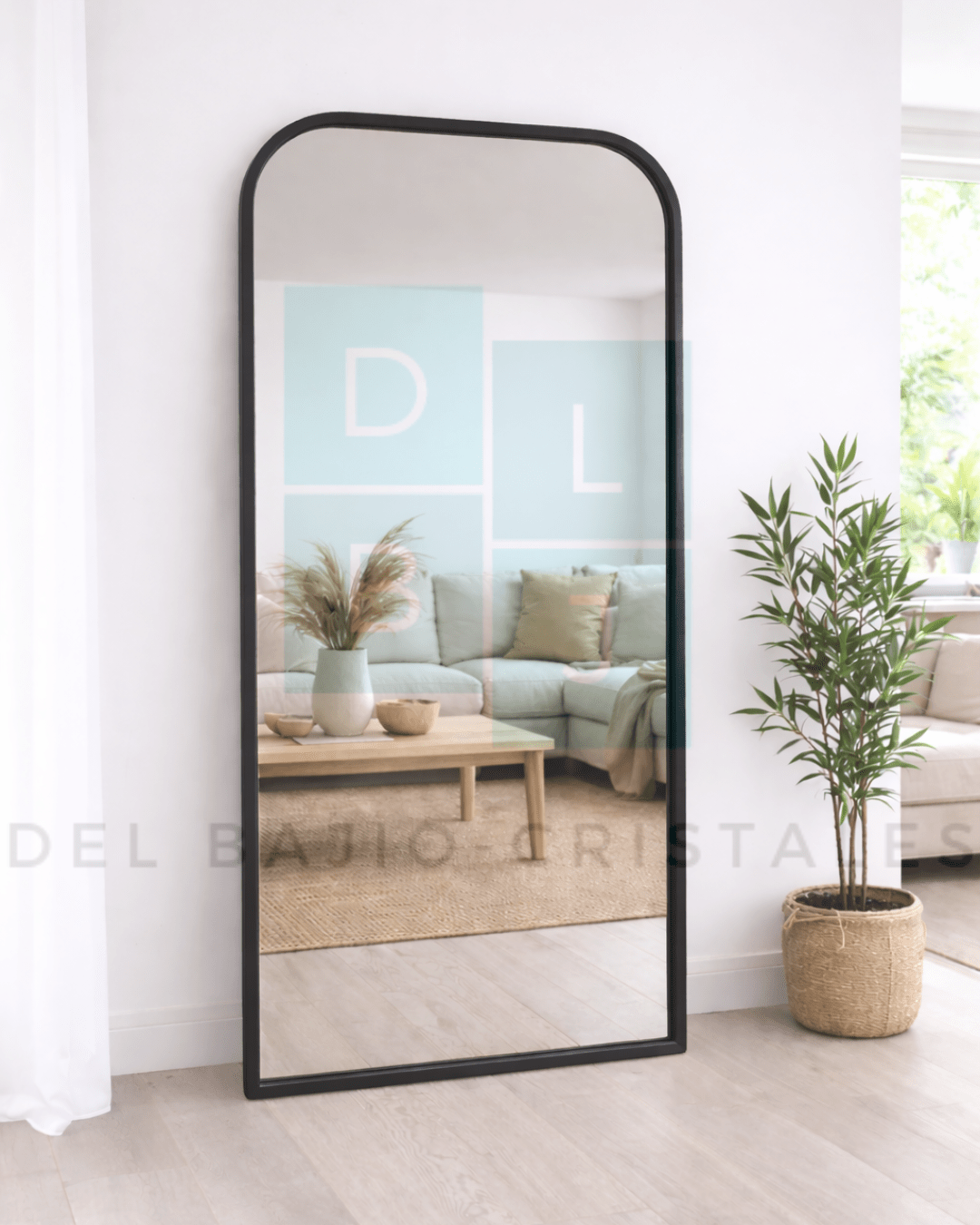 Magnífico espejo rectangular de cuerpo completo esquinas redondeadas con marco en herrería, una pieza perfecta para aquellos que buscan ampliar visualmente sus espacios y llenar de luz cualquier ambiente. Este espejo no solo es funcional, sino que también actúa como un elemento decorativo que aporta estilo y elegancia a tu hogar u oficina.